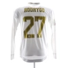 Questo cimelio fa parte della fornitura gara messa a disposizione degli atleti in occasione delle competizioni ufficiali e differisce nelle sue caratteristiche peculiari dai prodotti messi in commercio dallo sponsor tecnico, potrebbe essere stato indossato in partita e lavato dopo il termine della gara oppure preparato per il match ma poi non utilizzato.