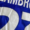Questo cimelio fa parte della fornitura gara messa a disposizione degli atleti in occasione delle competizioni ufficiali e differisce nelle sue caratteristiche peculiari dai prodotti messi in commercio dallo sponsor tecnico, potrebbe essere stato indossato in partita e lavato dopo il termine della gara oppure preparato per il match ma poi non utilizzato.